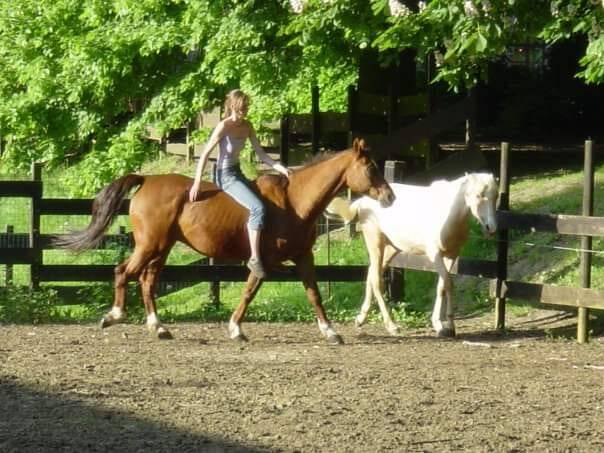 Durant cette période, je me suis intéressée et formée à l'équitation dite éthologique, à la méthode Pat Parelli, à la méthode La Cense, ... afin de travailler les codes à pied avec mes chevaux et la désensibilisation.